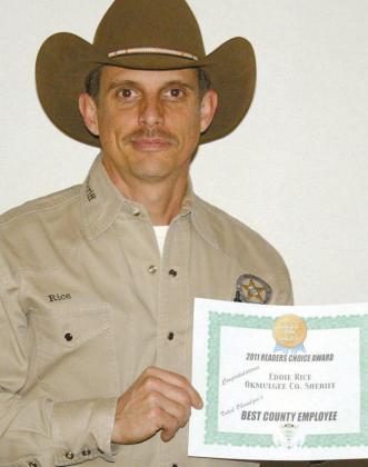 Eddy Rice was honored Wednesday as the longest running sheriff in Okmulgee County history - 18 years and one day. It took a fabricated âmeetingâ and a well-timed truck repair, along with the assistance of his wife Valerie, to get the sheriff to the Okmulgee County Courthouse where he was surprised with two special presentations.