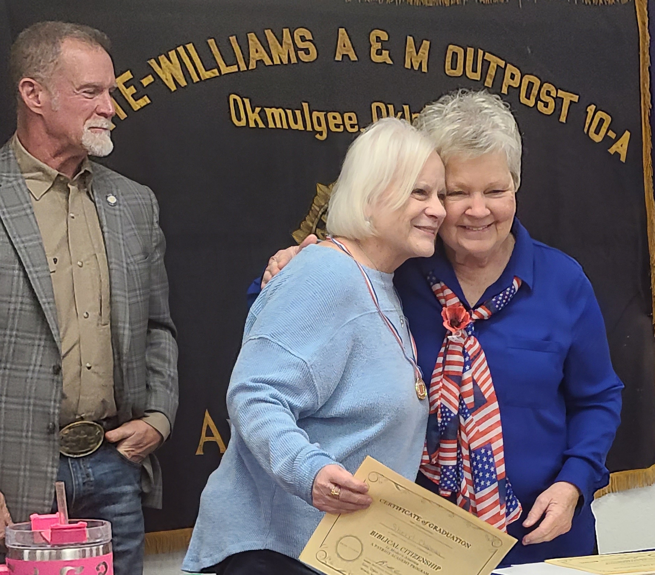 Senator Hamilton, a graduate of West Point, served in the U. S. Army and continues to serve America now as an Oklahoma State Senator. His closing speech covered his time as a soldier, his call to the Senate and hope that others will study the State and the Country’s Constitution. He awarded graduates with a class medal while Patti Ogden gave each a copy of the Declaration of Independence.